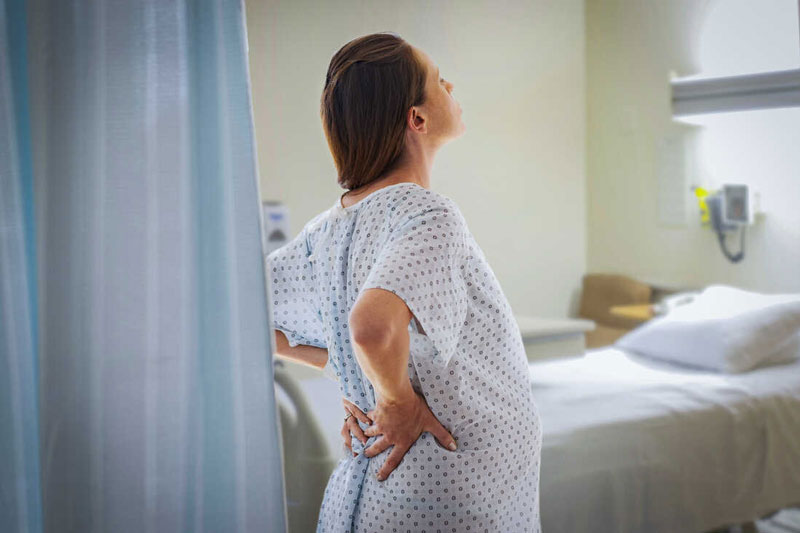 Ngay khi vào phòng sinh, nếu tình trạng sức khỏe cho phép, mẹ có thể linh hoạt thay đổi tư thế để giảm đau. Việc ngồi dậy, đứng vịn, đi lại nhẹ nhàng hoặc nằm nghiêng có thể giúp giảm đau lưng và giúp em bé di chuyển xuống thuận lợi hơn.